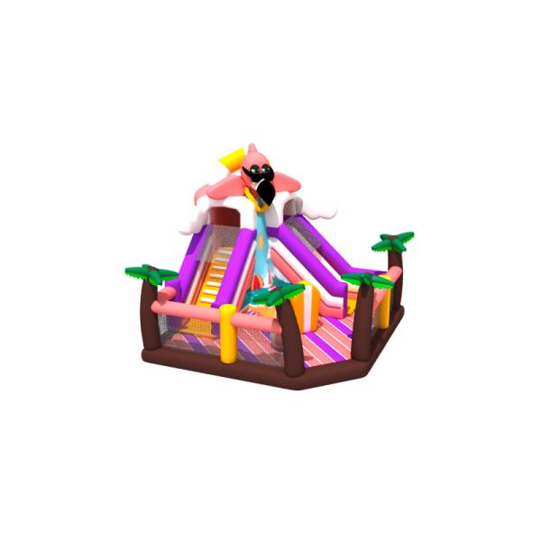 New Flamingo Beach Theme Colorful Inflatable Fun City Coconut Palms Inflatable Bounce with Slide Commercial Inflatable